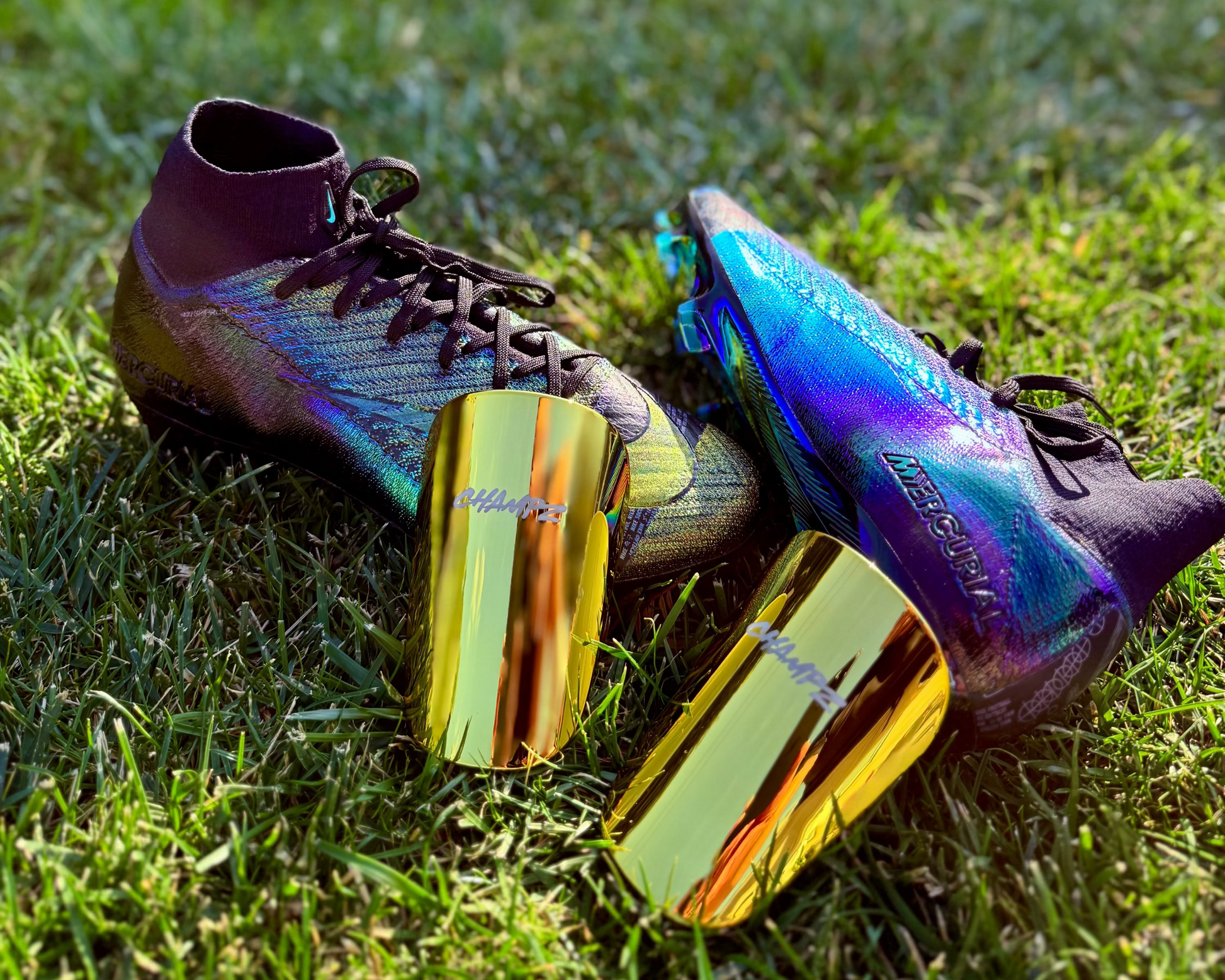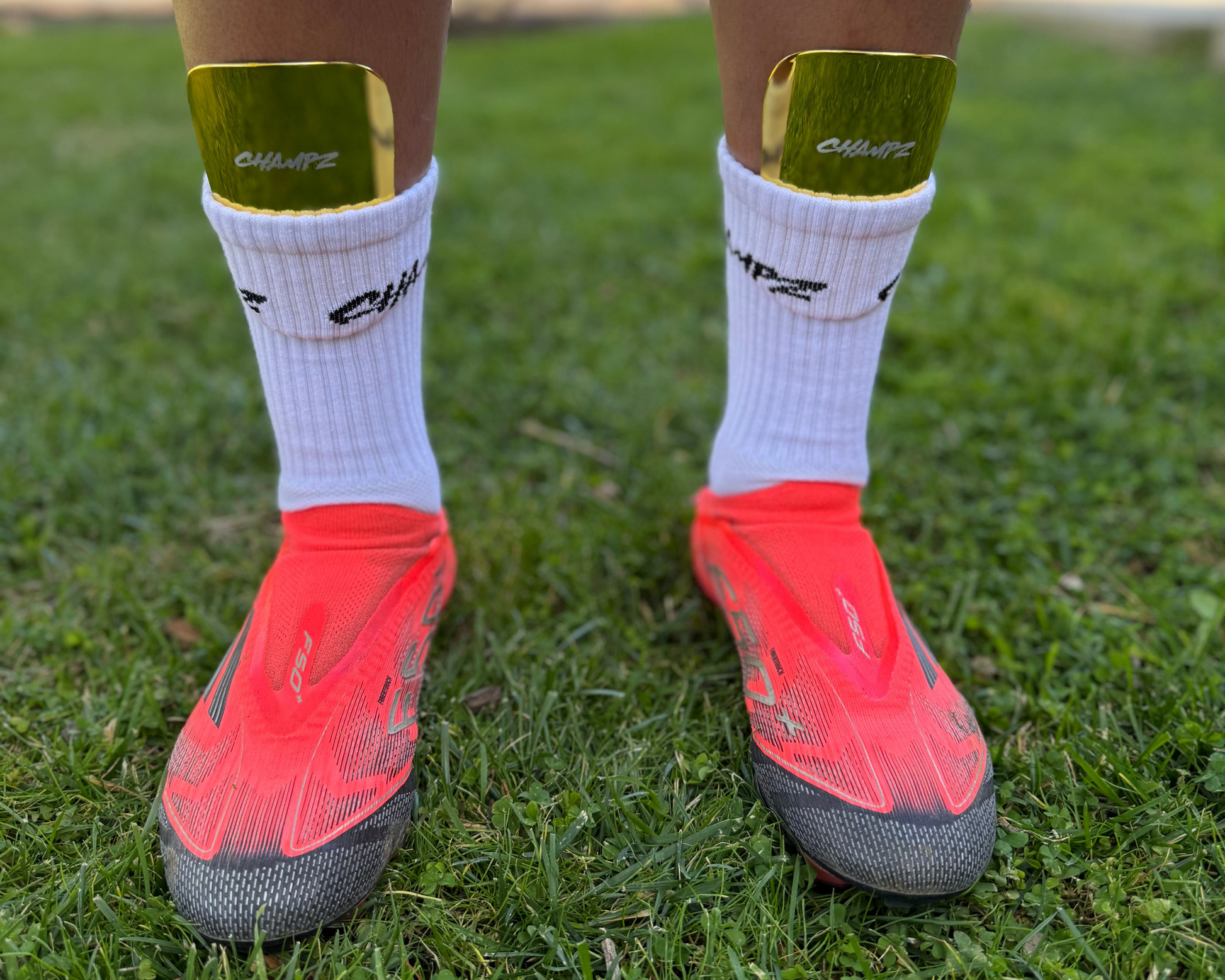 Engineered for competitive soccer players, these premium shin guards deliver superior protection without compromising mobility. The gold finish combines durability with a professional aesthetic, while the anatomical design ensures a secure fit that stays in place during intense play. Ideal for training sessions and match day performance.